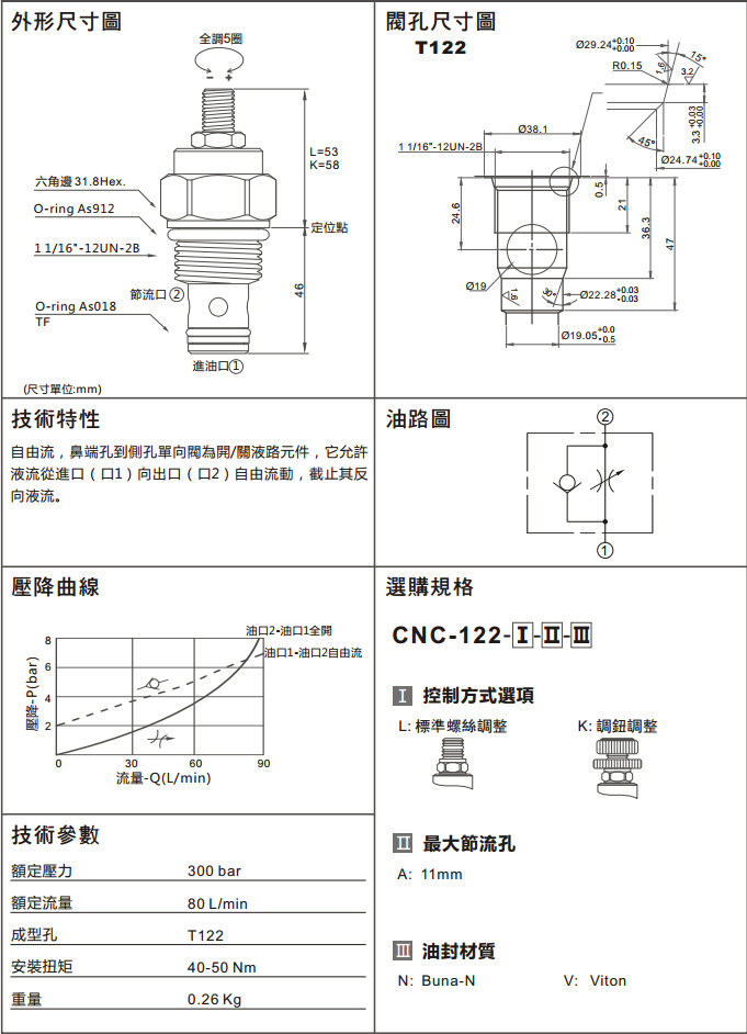 CNC-122-LAN,CNC-122-LAV,CNC-122-KAN,CNC-122-KAV,流量控制閥(全調(diào)型節(jié)流閥,附止回)