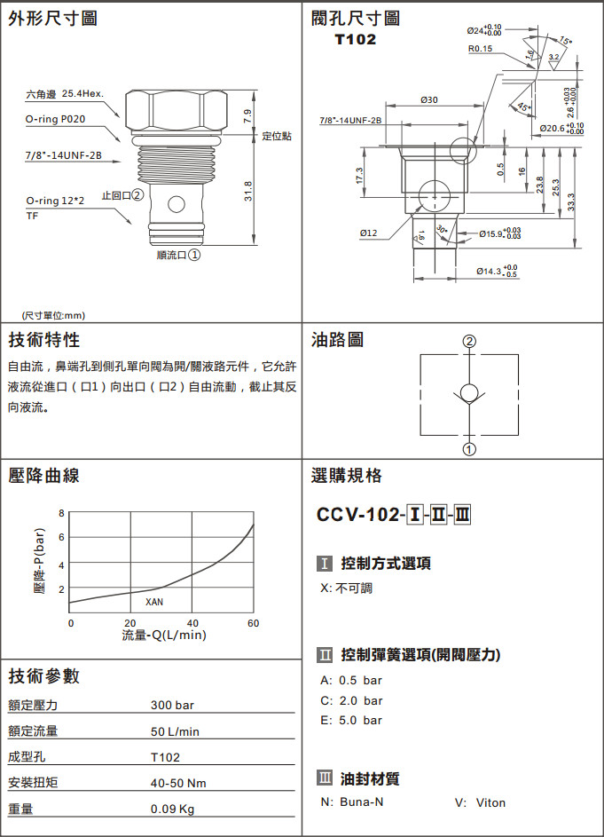 CCV-102-XAN,CCV-102-XCN,CCV-102-XEN,CCV-102-XAV,CCV-102-XEV,CCV-102-XCV,單向閥(口1通口2自由流)