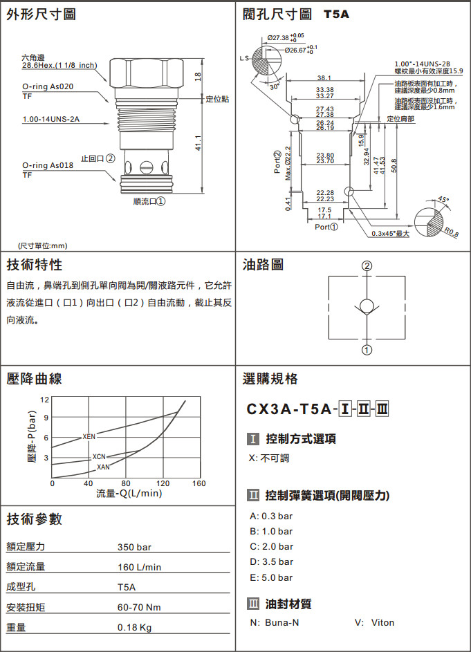 CX3A-T5A-XAN,CX3A-T5A-XCN,CX3A-T5A-XEN,CX3A-T5A-XBV,CX3A-T5A-XEV,CX3A-T5A-XBN,CX3A-T5A-XDN,CX3A-T5A-XAV,CX3A-T5A-XCV,CX3A-T5A-XDV,單向閥(口1通口2自由流)