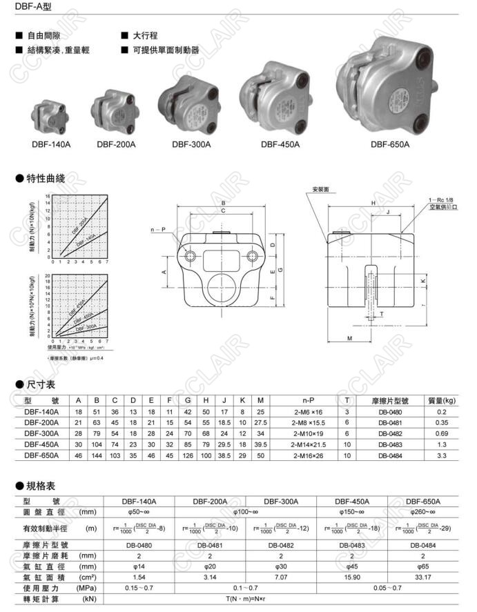 DBF-140A,DBF-200A,DBF-300A,DBF-450A,DBF-650A,空壓蝶式制動器