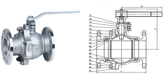 三、Q41F法蘭式軟密封球閥主要零件及材質(zhì)