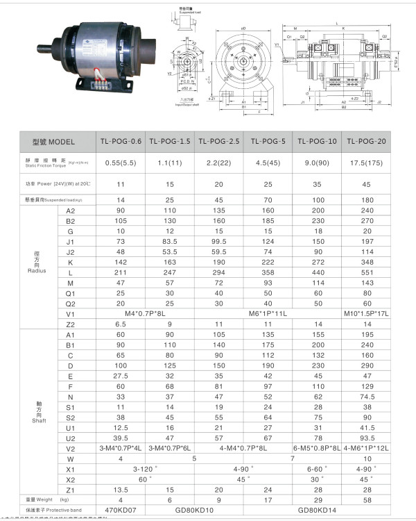 TL-POG-0.6,TL-POG-1.5,TL-POG-2.5,TL-POG-5,TL-POG-10,TL-POG-20,外露式雙電磁離合器單剎車(chē)組