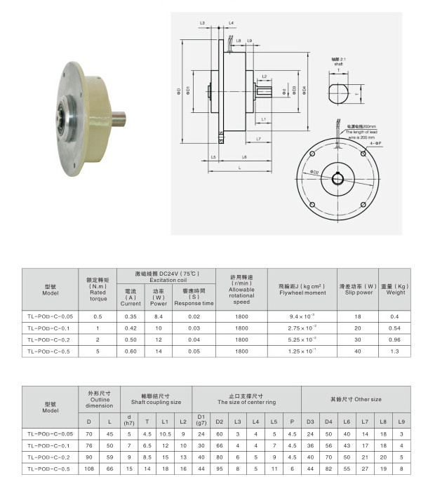 TL-POD-C-0.05,TL-POD-C-0.1,TL-POD-C-0.2,TL-POD-C-0.5,微型磁粉制動器