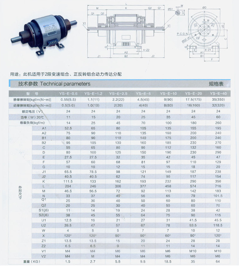 YS-E-0.6,YS-E-1.2,YS-E-2.5,YS-E-5,YS-E-10,YS-E-20,YS-E-40,電磁雙離合組合-導(dǎo)座型