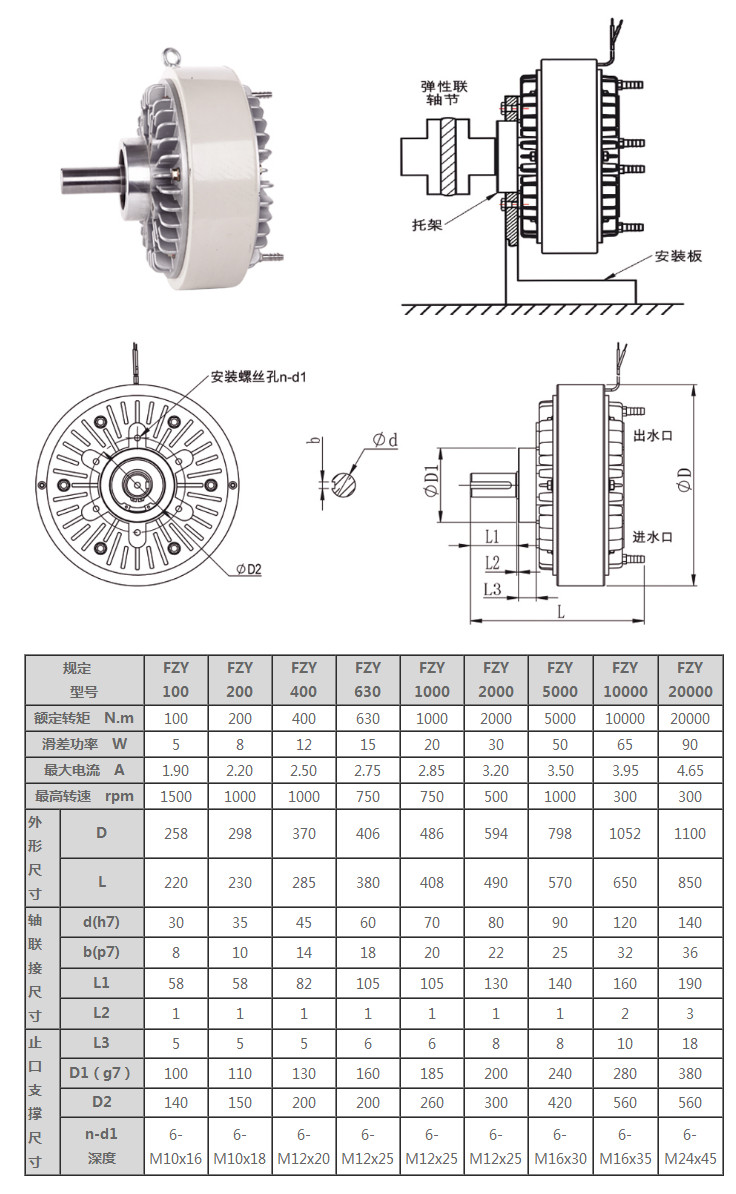 FZY100,FZY200,FZY400,FZY630,FZY1000,FZY2000,FZY5000,FZY10000,FZY20000單出軸磁粉制動(dòng)器