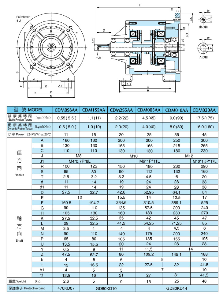 CDM0S6AA,CDM1S5AA,CDM2S5AA,CDM005AA,CDM010AA,CDM020AA單法蘭電磁離合器剎車器組