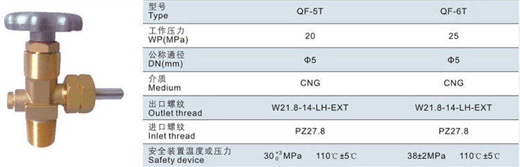 QF-5T,QF-6T,壓縮天燃氣瓶閥