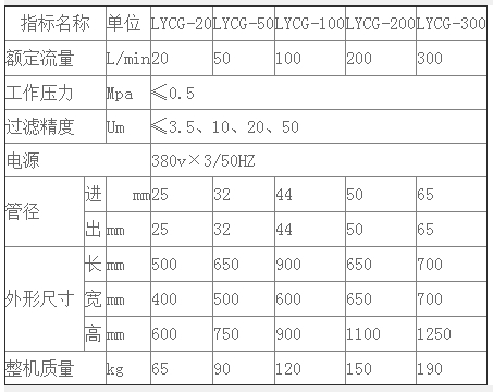 二、JYCG系列多級精密過濾機技術(shù)參數(shù)表