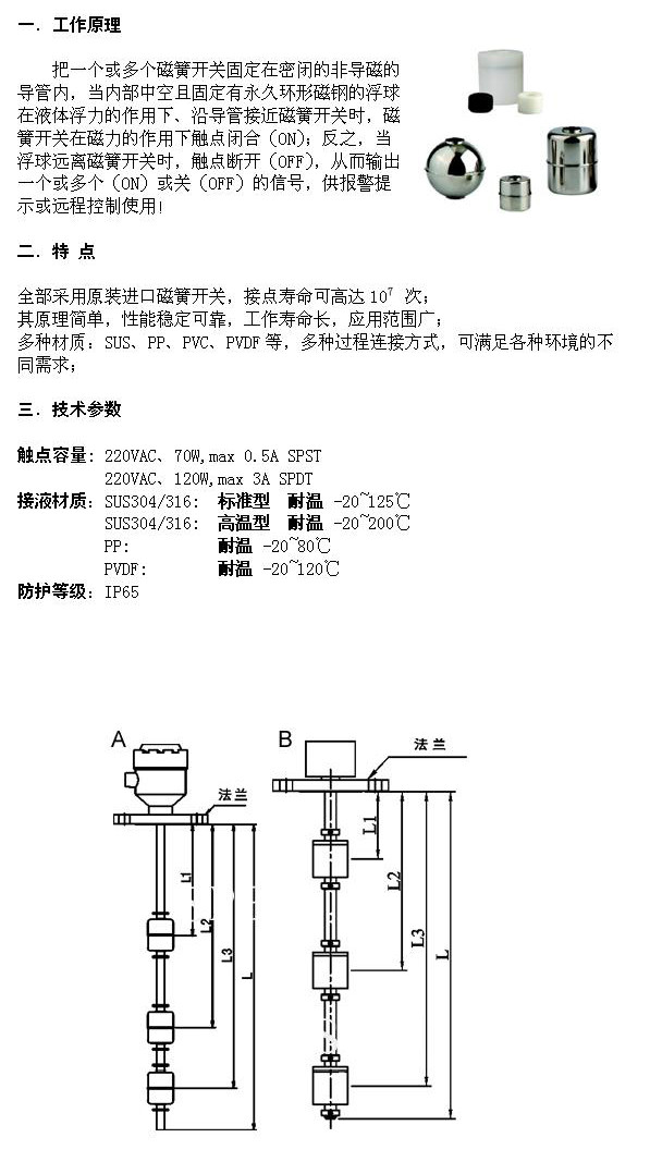 XFL-PP731-D2,超短型雙浮球水位開(kāi)關(guān)