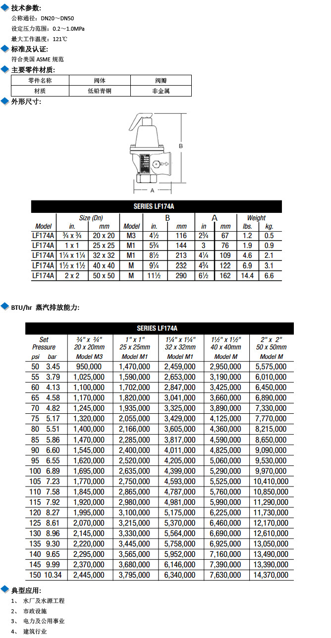LF174A-DN20,LF174A-DN25,LF174A-DN32,LF174A-DN40,LF174A-DN50,低鉛ASME安全泄壓閥
