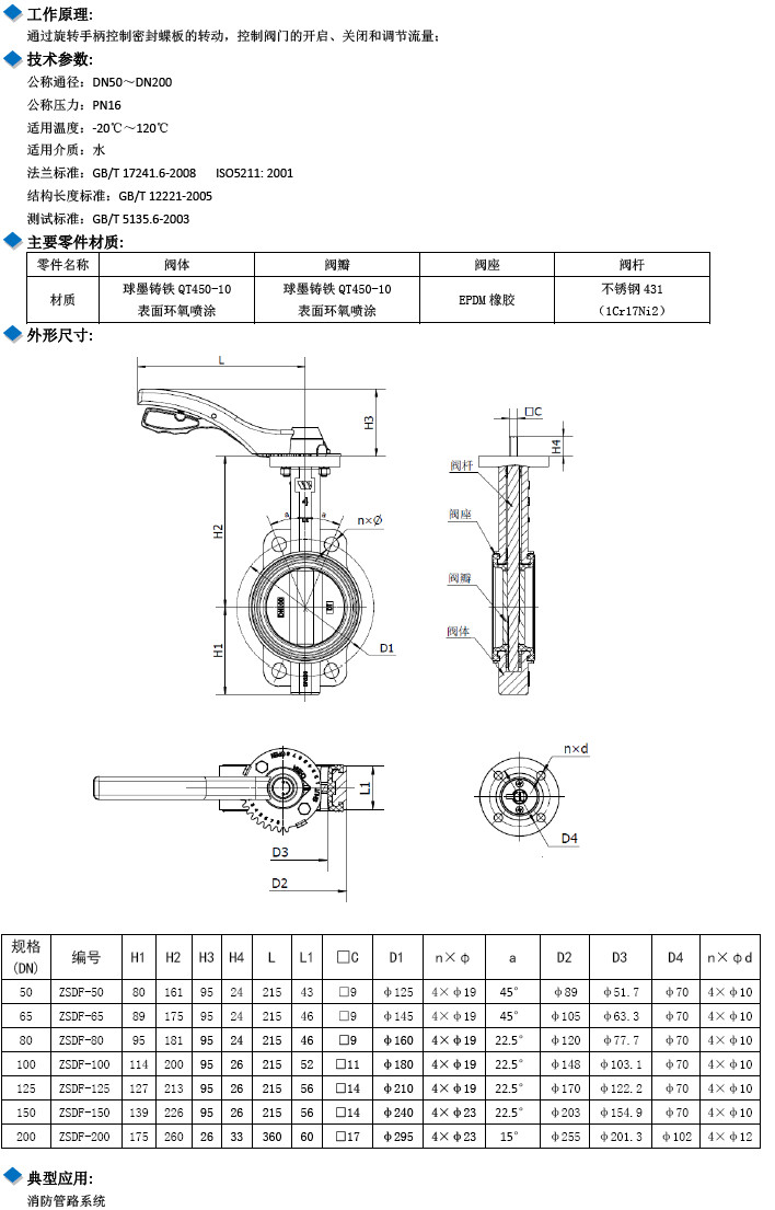 ZSDF-50,ZSDF-65,ZSDF-80,ZSDF-100,ZSDF-125,ZSDF-150,ZSDF-200,手柄式消防對(duì)夾中線蝶閥