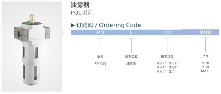 POL-1/8,POL-1/4,POL-3/8,POL-3/4,POL-1/2,POL-1,油霧器