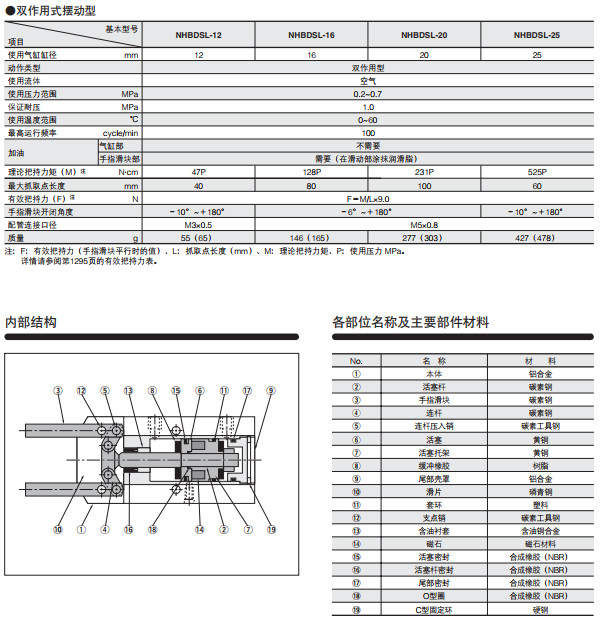 NHBDSL-12,NHBDSL-16,NHBDSL-20,NHBDSL-25,氣動手指--擺動型