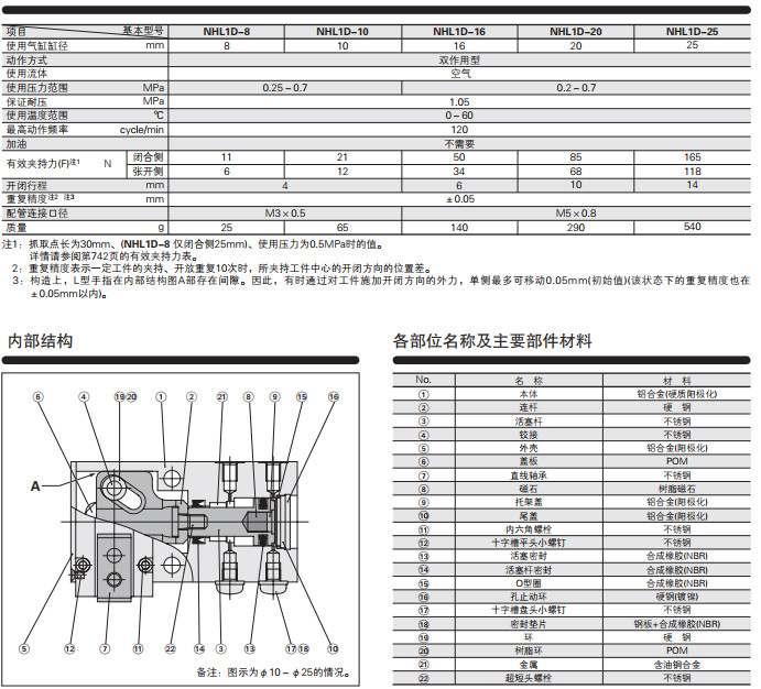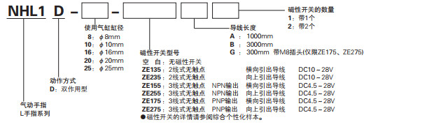 NHL1D-8,NHL1D-10,NHL1D-16,NHL1D-20,NHL1D-25,氣動手指--L手指系列