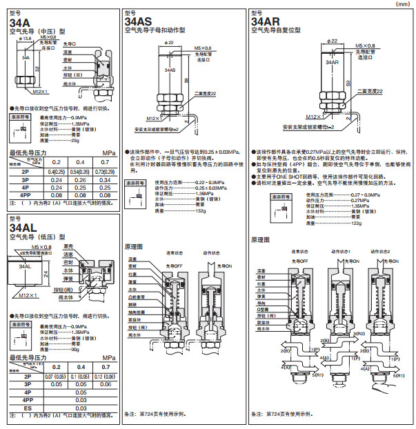34A,34AS,34AR,34AL,閥操作用操作部件--空氣先導(dǎo)型