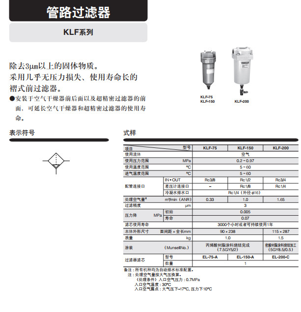 KLF-75,KLF-150,KLF-200,干線過濾器KLF系列
