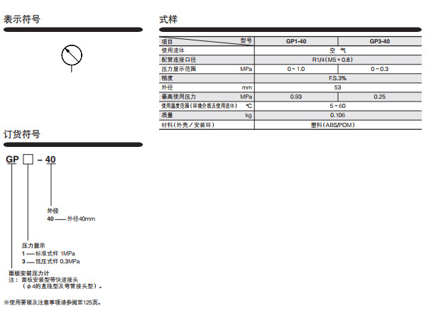 GP1-40,GP3-40,面板安裝壓力計