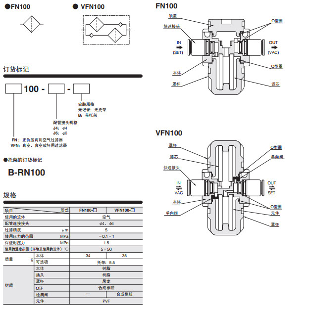 VFN100-J4,VFN100-J6,小型FRL真空及真空破壞用過濾器