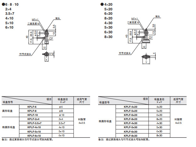 KPLF-6,KPLF-8,KPLF-10,KPLF-2*4,KPLF-3.5*7,KPLF-4*10,真空吸盤橫向配管固定型KPLF系列