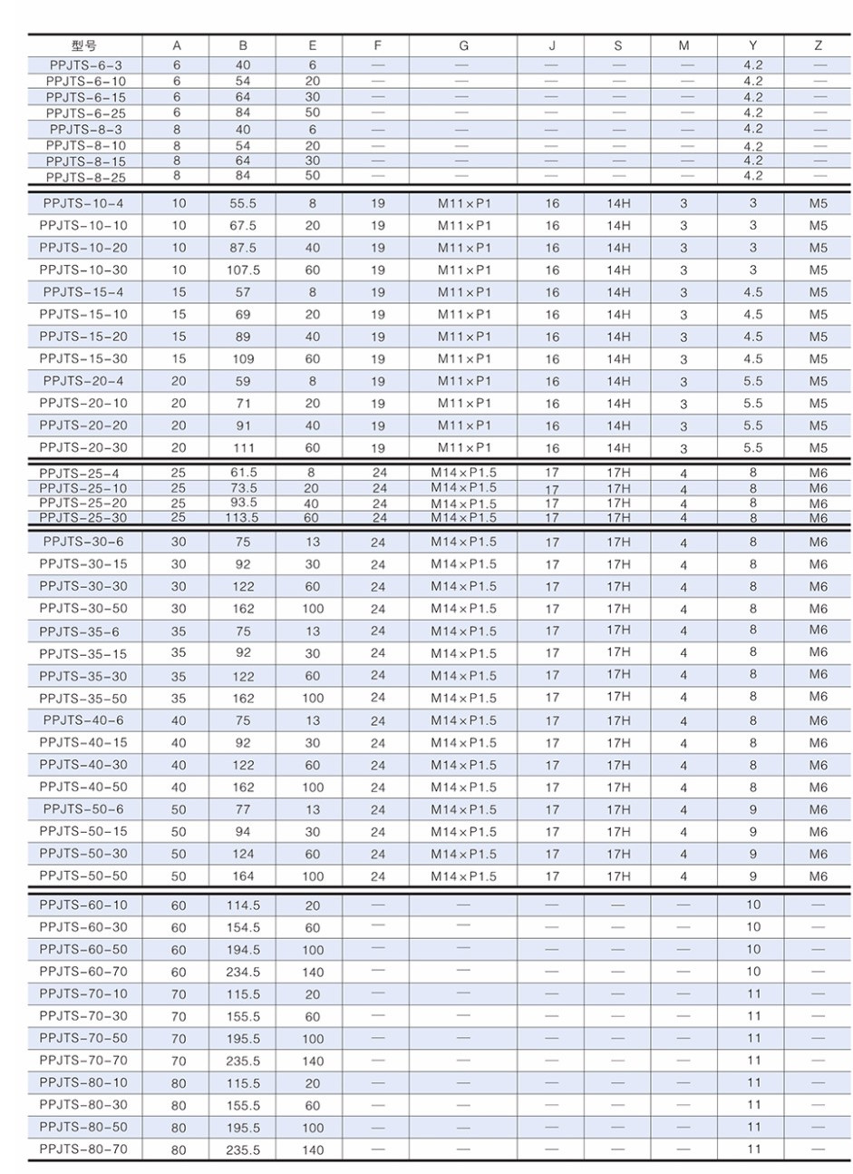 PPJTS-6-3,PPJTS-6-10,PPJTS-6-15,PPJTS-6-25,PPJTS-8-3,PPJTS-8-10,PPJTS-8-15,PPJTS-8-25,PPJTS-10-4,PPJTS-10-10 PPJTS-10-20,PPJTS-10-30,PPJTS-15-4,PPJTS-15-10,PPJTS-15-20,PPJTS-15-30,PPJTS-20-4,PPJTS-20-10,PPJTS-20-20 PPJTS-20-30,PPJTS-25-4,PPJTS-25-10,PPJTS-25-20,PPJTS-25-30,PPJTS-30-6,PPJTS-30-15,PPJTS-30-30,PPJTS-30-50 PPJTS-35-6,PPJTS-35-15,PPJTS-35-30,PPJTS-35-50,PPJTS-40-6,PPJTS-40-15,PPJTS-40-30,PPJTS-40-50,PPJTS-50-6 PPJTS-50-15,PPJTS-50-30,PPJTS-50-50,PPJTS-60-10,PPJTS-60-30,PPJTS-60-50,PPJTS-60-70,PPJTS-70-10,PPJTS-70-30 PPJTS-70-50,PPJTS-70-70,PPJTS-80-10,PPJTS-80-30,PPJTS-80-50,PPJTS-80-70