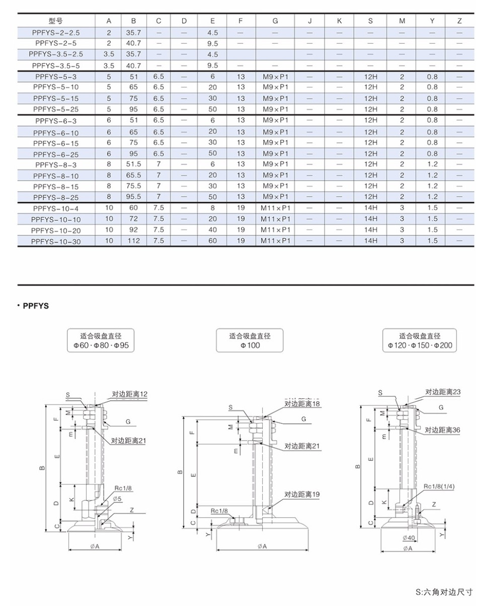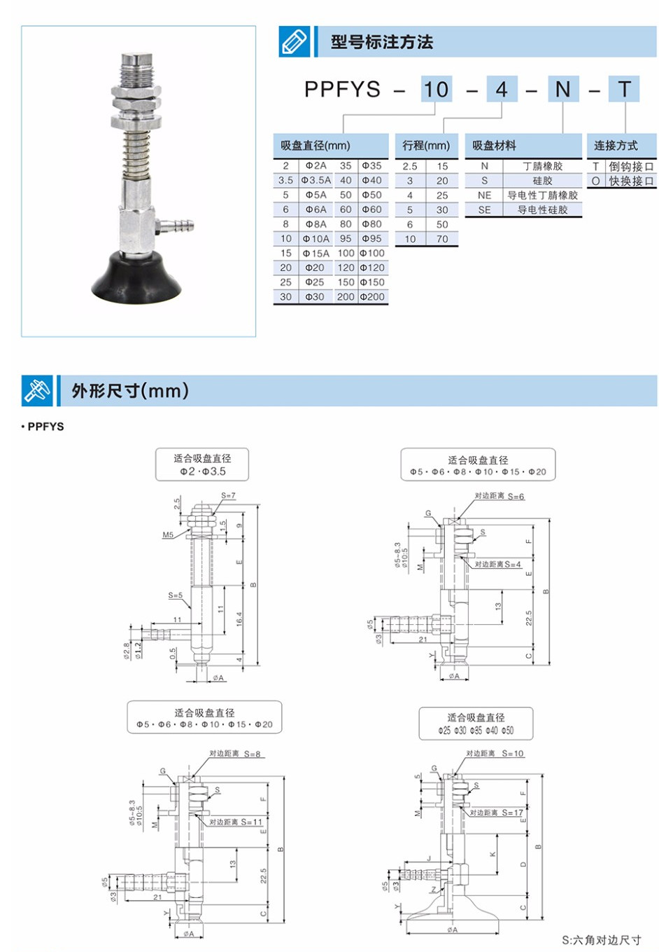 PPFYS-2-2.5,PPFYS-2-5,PPFYS-3.5-2.5,PPFYS-3.5-5,PPFYS-5-3,標(biāo)準(zhǔn)垂直真空口帶緩沖吸盤(pán)組