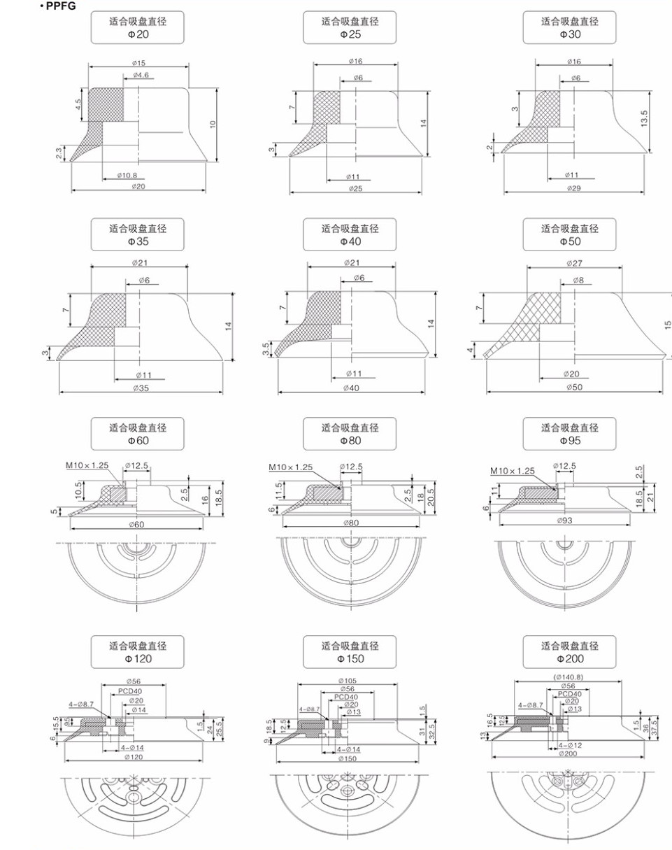 PPFG-2-N,PPFG-2-S,PPFG-2-NE,PPFG-2-SE,PPFG-3.5-N,PPFG系列標(biāo)準(zhǔn)型吸盤