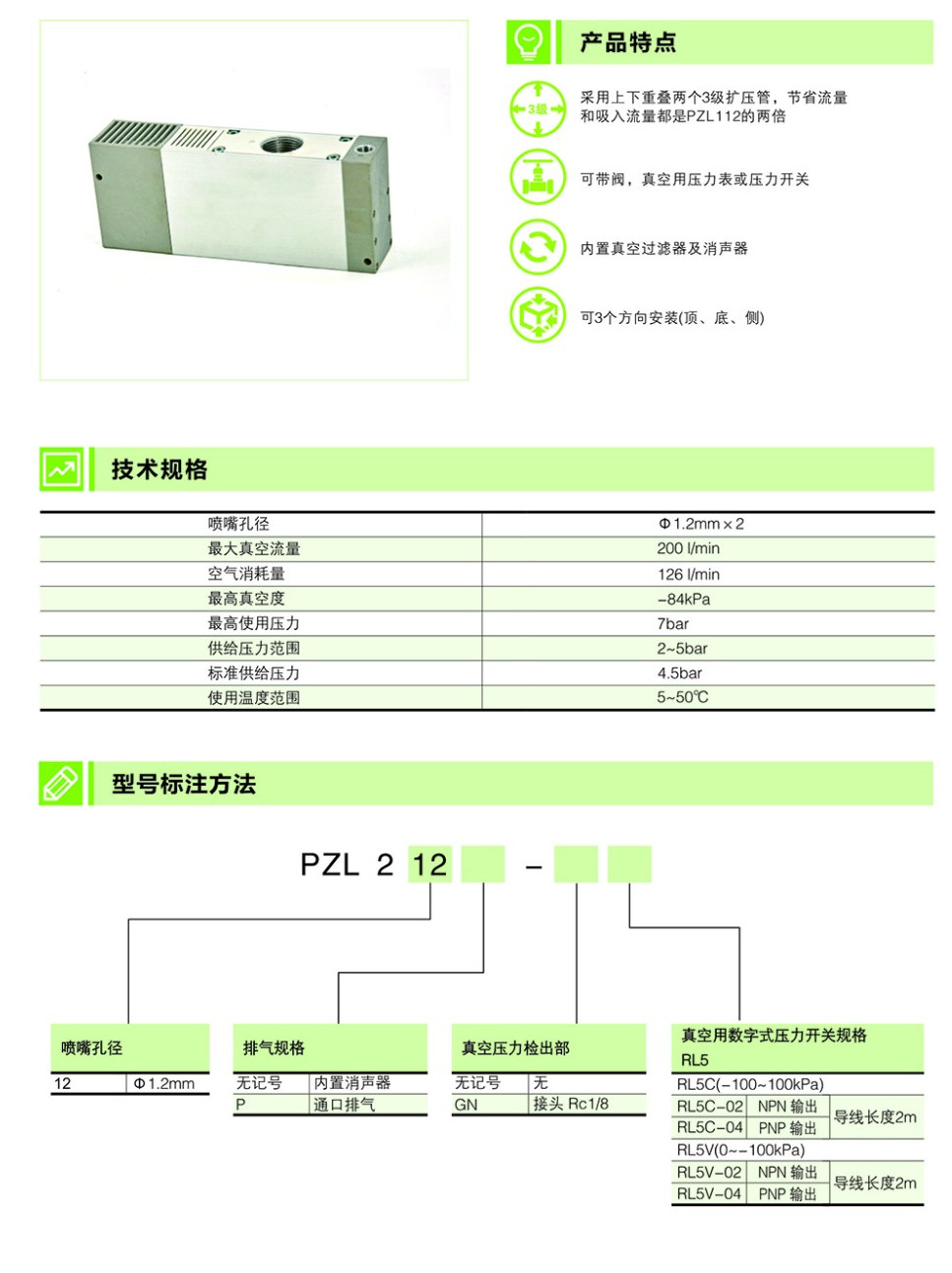 PZL212,PZL212-GN,PZL212P,PZL212P-GN,PZL212真空發(fā)生器