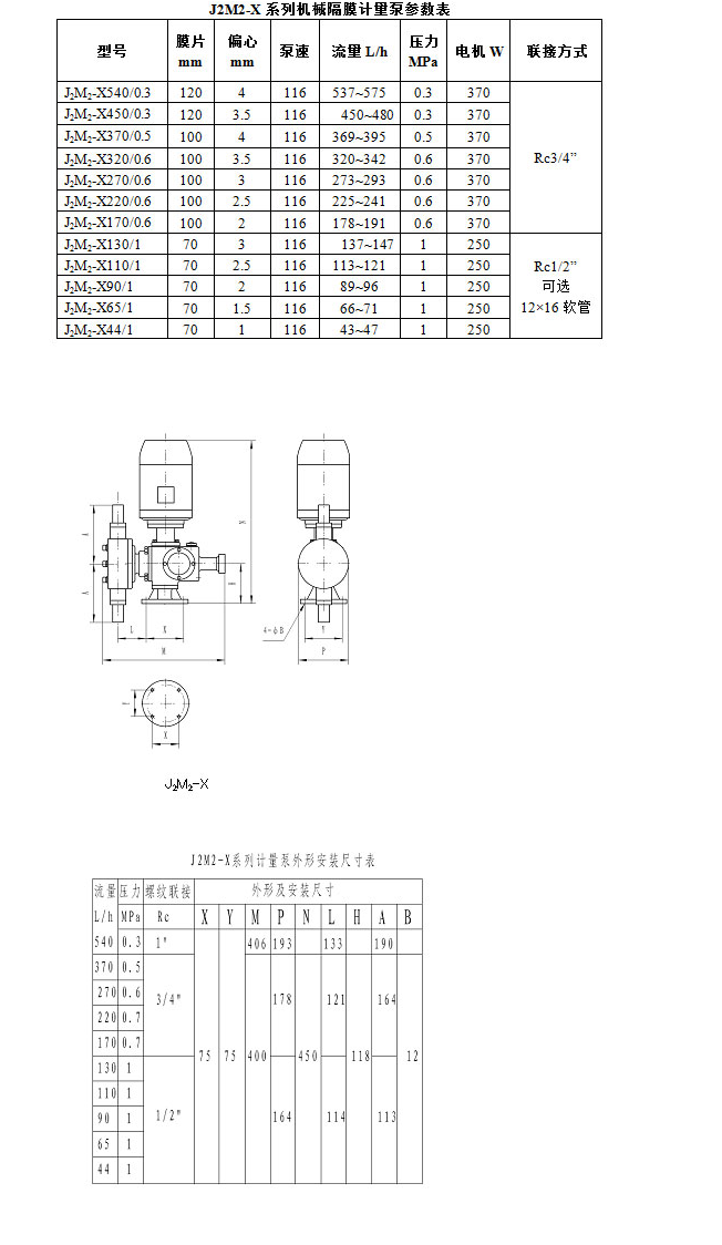J2M2-X540/0.3,J2M2-X450/0.3,J2M2-X370/0.5,J2M2-X320/0.6,J2M2-X型機(jī)械隔膜式計(jì)量泵