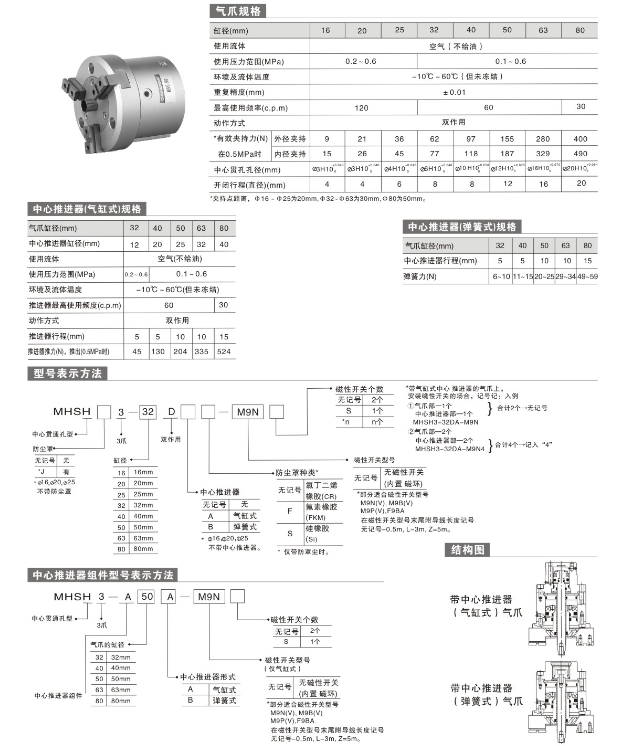 氣爪氣缸 MHSH3-16D,MHSH3-20D,MHSH3-25D,MHSH3-32D,MHSH3-40D,MHSH3-50D,MHSH3-63D,MHSH3-80D