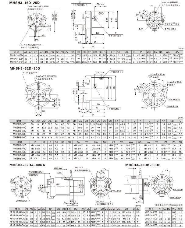 MHSH3-16D,MHSH3-20D,MHSH3-25D,MHSH3-32D,MHSH3-40D,MHSH3-50D,MHSH3-63D,MHSH3-80D