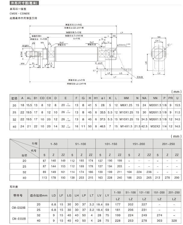CM2BJG25-250,CM2BJG25-300,CM2BJG32-25,CM2BJG32-50,CM2BJG32-75,CM2BJG32-100,