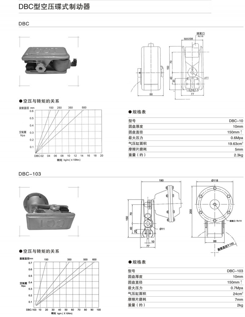 空壓蝶式制動器DBC-10,DBC-103