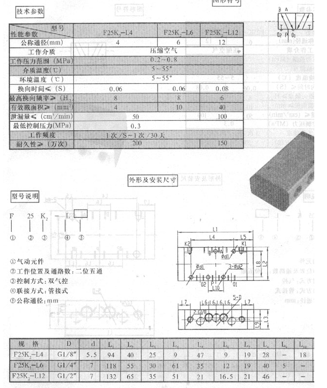 二位五通雙氣控?fù)Q向閥F25K2-L4,F25K2-L6,F25K2-L12