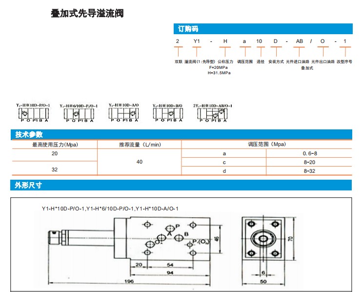 Y1-Ha10D-P/O-1,Y1-Ha6/10D-P/O-1,2Y1-Ha10D-AB/O-1,疊加式先導(dǎo)溢流閥