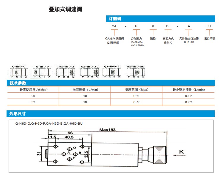 Q-F6D-O,Q-F6D-P,QA-F6D-A,QA-F6D-AU,QA-F6D-B,QA-F6D-BU,疊加式調(diào)速閥