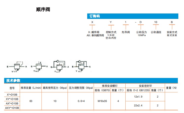 X-D10B,X1-D10B,XY-D10B,XY1-D10B,AX1-D10B,AXY-D10B,順序閥