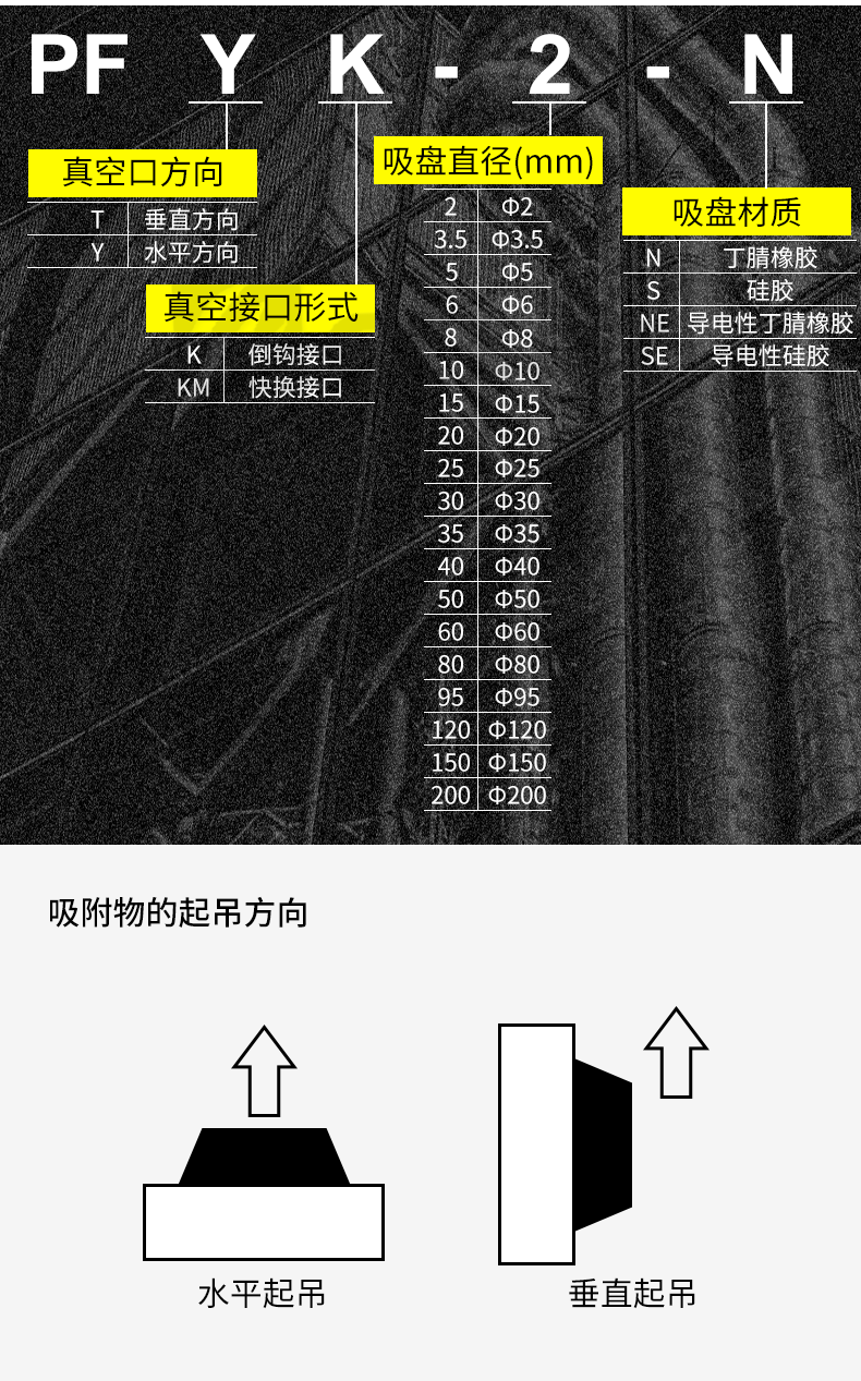 真空吸盤PFYK-3.5A,PFYK-6A,PFYK-8A,PFYK-10A,PFYK-15,PFYK-20,PFYK-25,PFYK-30,PFYK-35,PFYK-40,PFYK-50,PFYK-60,PFYK-80,PFYK-95,PFYK-120,PFYK-150,PFYK-200吸鐵板50鋼板吸盤
