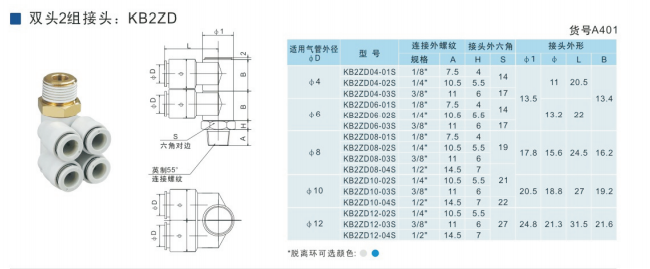 SMC型雙頭2組接頭KB2ZD04-M5,KB2ZD04-01S,KB2ZD04-02S,KB2ZD04-03S,KB2ZD06-01S,KB2ZD06-02S,KB2ZD06-03S,KB2ZD08-01S,KB2ZD08-02S,KB2ZD08-03S,KB2ZD08-04S,KB2ZD10-02S,KB2ZD10-03S,KB2ZD10-04S,KB2ZD12-02S,KB2ZD12-03S,KB2ZD12-04S,
