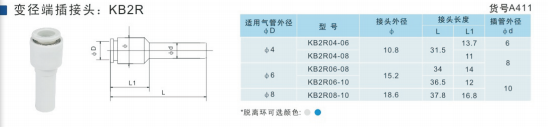 SMC型變徑端插接頭KB2R04-06,KB2R04-08,KB2R04-10,KB2R06-04,KB2R06-08,KB2R06-10,KB2R06-12,KB2R08-10,KB2R08-12,KB2R10-12,