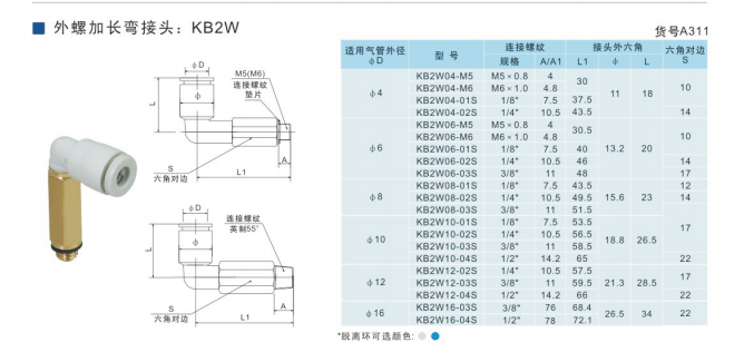 SMC型外螺加長(zhǎng)彎接頭KB2W04-M5,KB2W04-01S,KB2W04-02S,KB2W06-M5,KB2W06-01S,KB2W06-02S,KB2W06-03S,KB2W08-01S,KB2W08-02S,KB2W08-03S,KB2W10-01S,KB2W10-02S,KB2W10-03S,KB2W10-04S,KB2W12-02S,KB2W12-03S,KB2W12-04S,KB2W16-03S,KB2W16-04S,