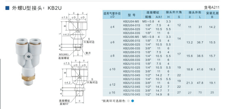 SMC型外螺U型接頭KB2U04-M5,KB2U04-M6,KB2U04-01S,KB2U04-02S,KB2U06-M5,KB2U06-M6,KB2U06-01S,KB2U06-02S,KB2U06-03S,KB2U08-01S,KB2U08-02S,KB2U08-03S,KB2U08-04S,KB2U10-01S,KB2U10-02S,KB2U10-03S,KB2U10-04S,KB2U12-02S,KB2U12-03S,KB2U12-04S,KB2U12-06S,KB2U16-03S,KB2U16-04S,KB2U16-06S,
