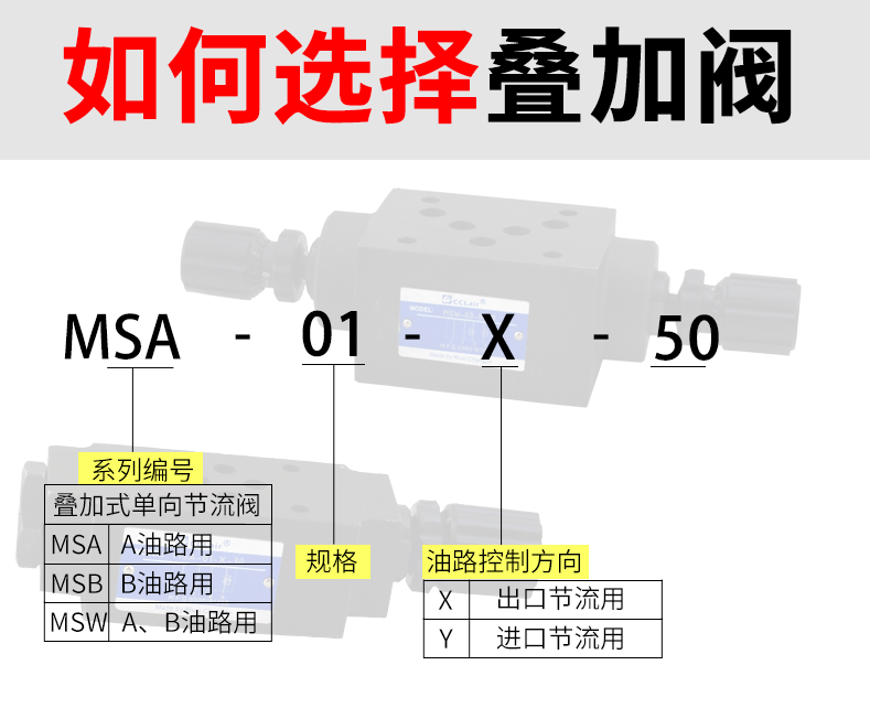 疊加式單向節(jié)流閥MSA-01-X-50,MSA-01-Y-50,MSA-02-X-50,MSA-02-Y-50,MSA-03-X-50,MSA-03-Y-50,MSA-04-X-50,MSA-06-X-50,