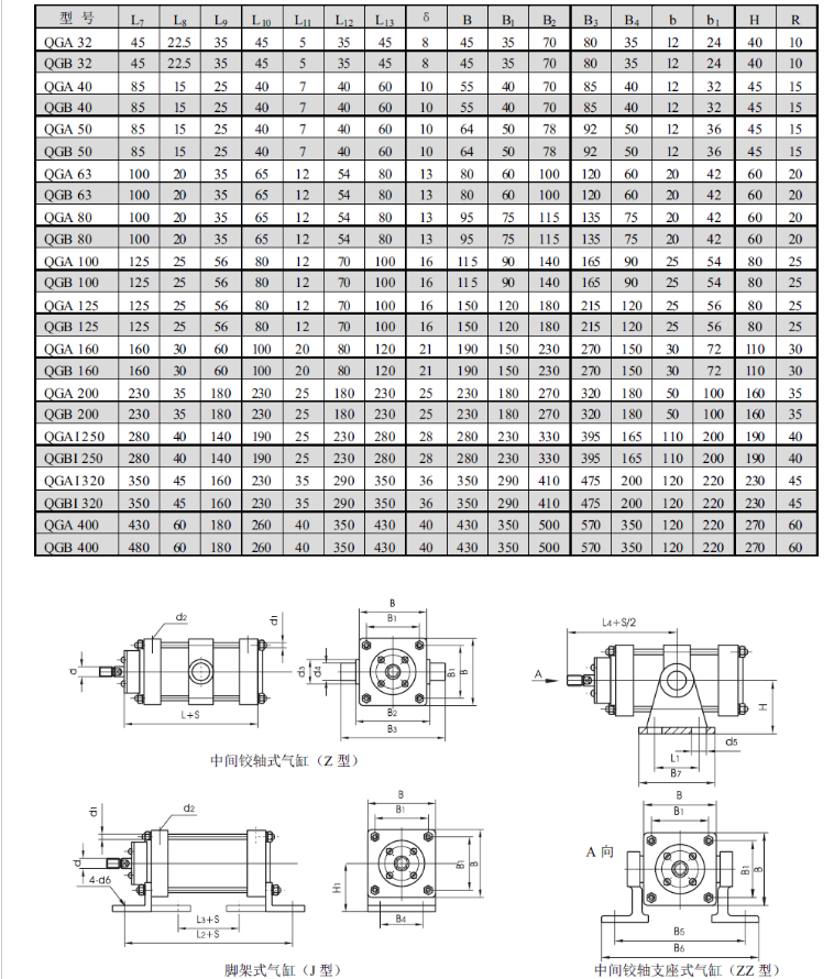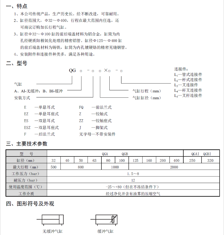 QGA320x1600,QGA320x1700,QGA320x1800,QGA320x1900,QGA320x2000氣缸