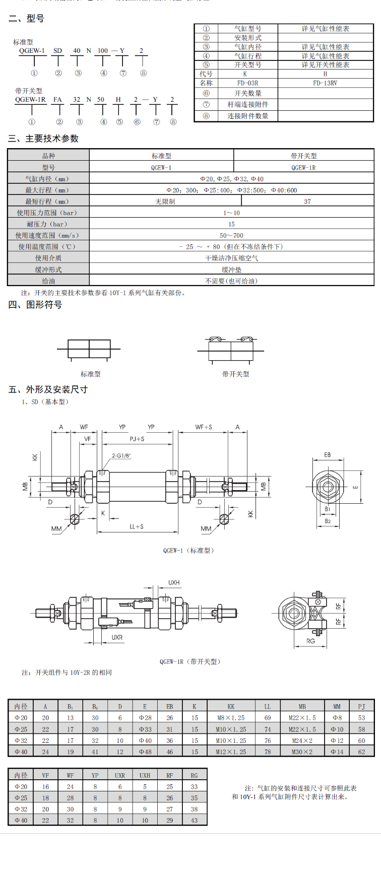 QGEW-1無給油潤(rùn)滑雙活塞桿氣缸