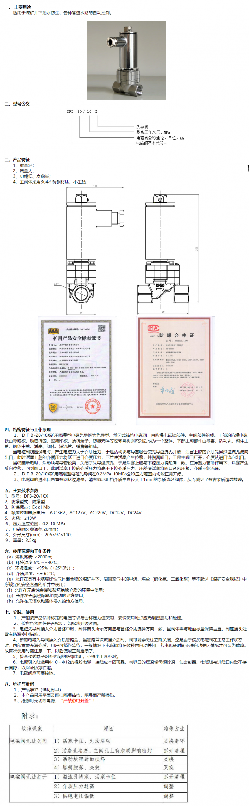 DFB-20/10X 礦用隔爆型電磁先導(dǎo)閥
