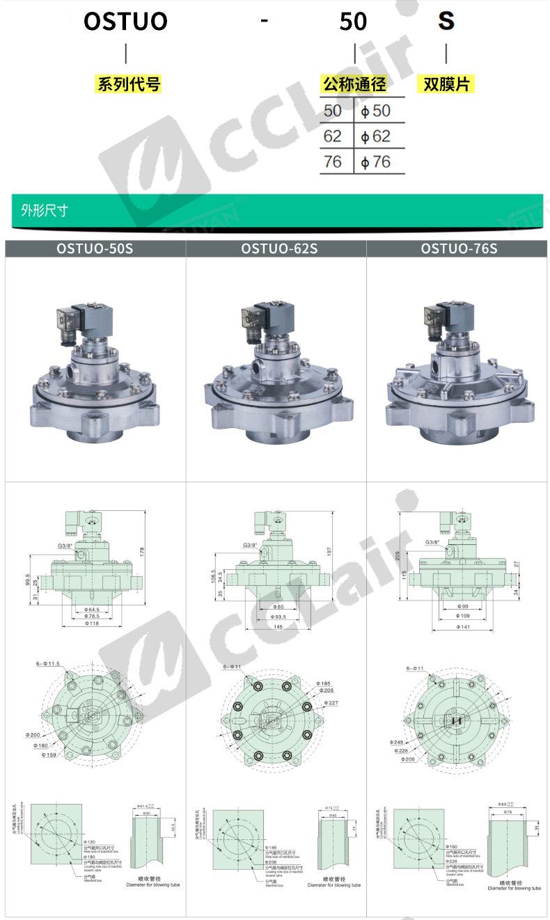 OSTUO-50S,OSTUO-62S,OSTUO-76S,OSTUO淹沒式脈沖閥