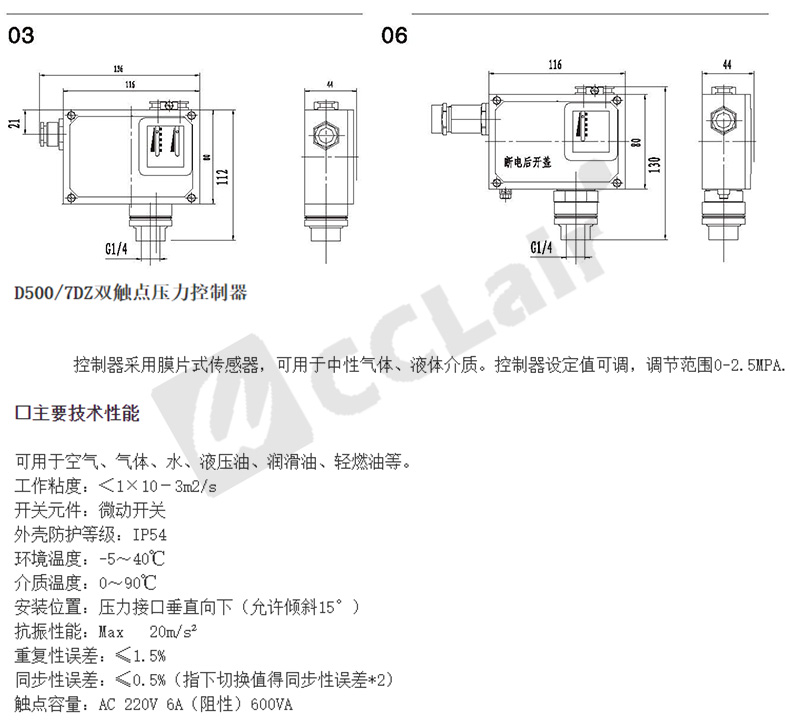型號: 壓力控制器 D500/7DZ切換差不可調(diào)