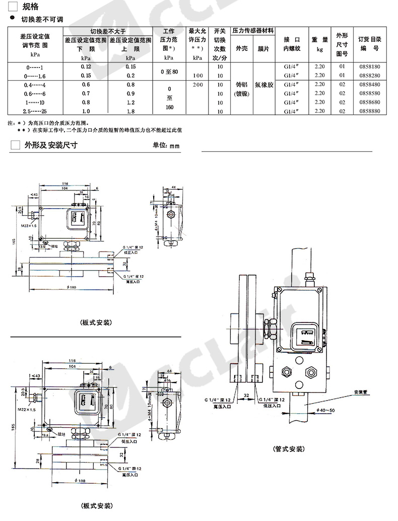 0819100,0819500,0819200,0819600,壓差開(kāi)關(guān)普通 D520/7DD切換差不可調(diào) 0819300,0819700,0819400,