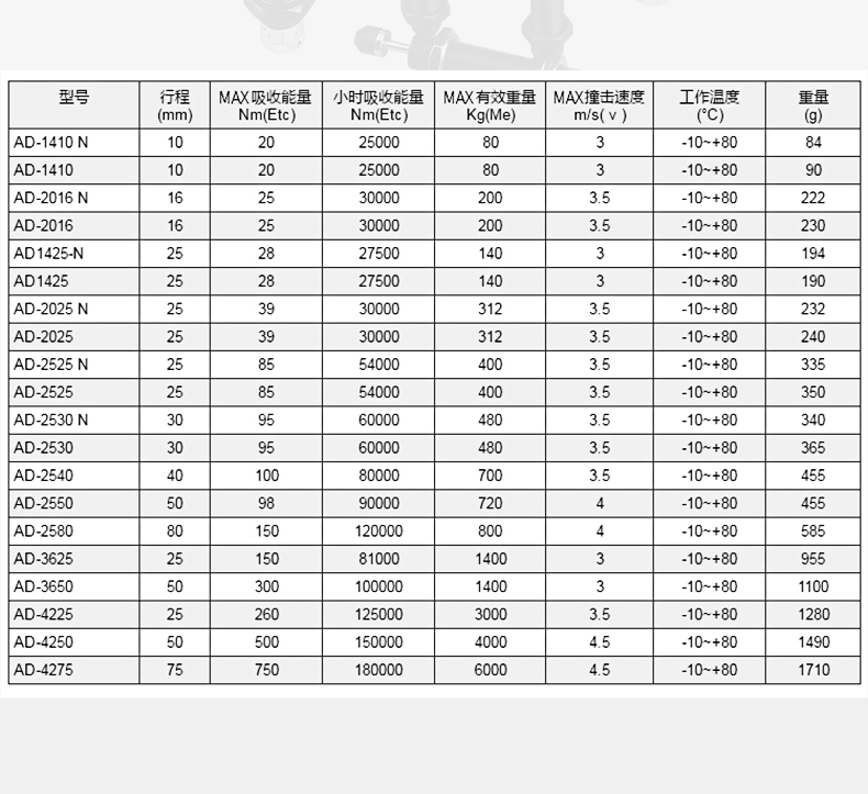 AC0806-2,AC2015-2,AC3650-2,AC2016-2,AC1006-2,AC2030-2,AC1008-2,AC2050-2,AC1210-2,AC2525-2,AC1007-2,AC2040-2,AC3660-2,AC1005-2,AC2020-2,AC1005-2,AC不可調(diào)緩沖器