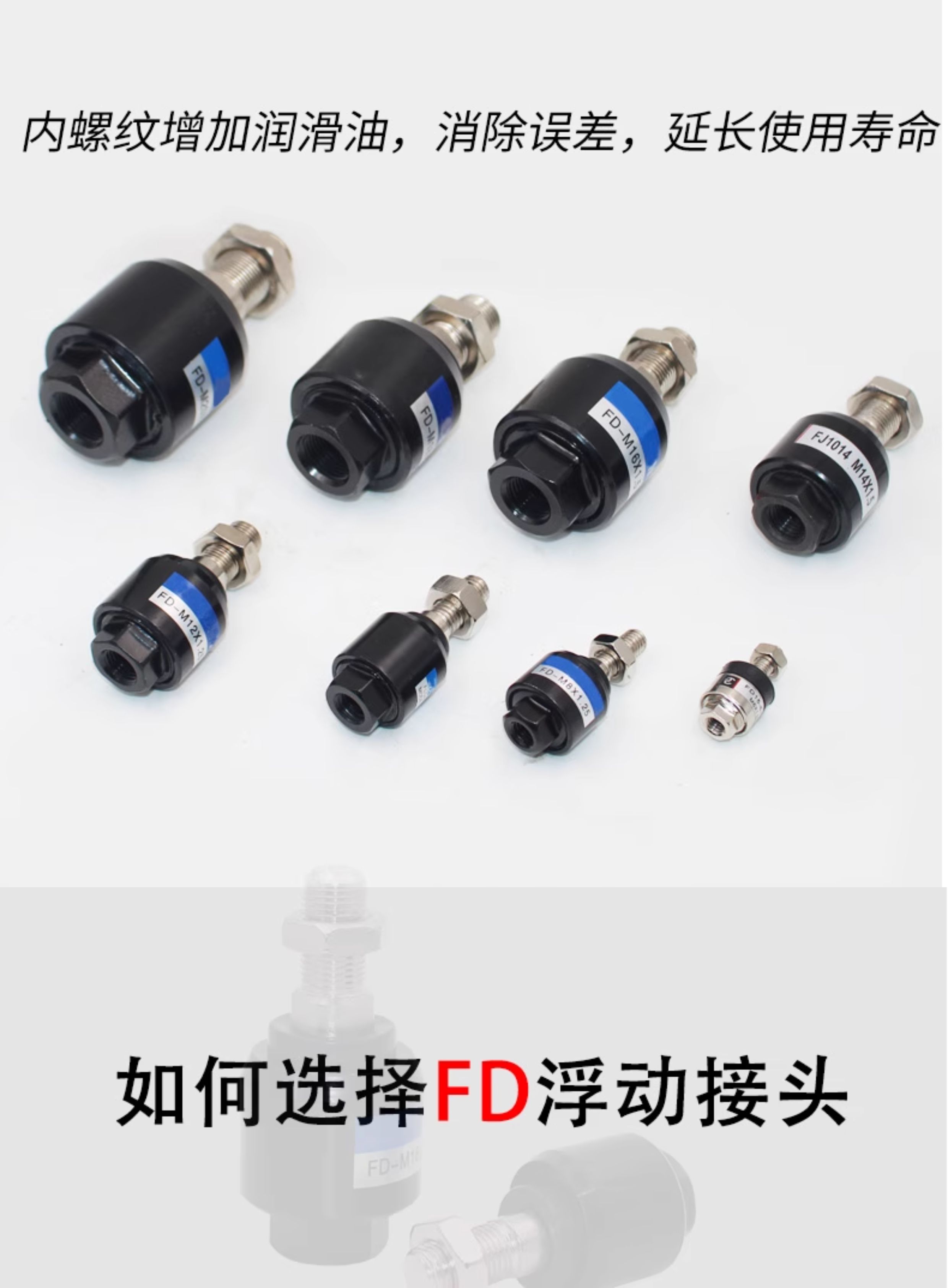 FD1003(M3*0.5),FD1004(M4*0.7),FD1005(M5*0.8),FD1006(M6*1),FD1008(M8*1.25),FD1010(M10*1.25),FD1010(M10*1.5),FD1012(M12*1.25),FD1012(M12*1.5),FD1012(M12*1.75),FD1014(M14*1.5),FD1016(M16*1.5),FD1016(M16*2),FD1018(M18*1.5),FD1020(M20*1.5)浮動接頭